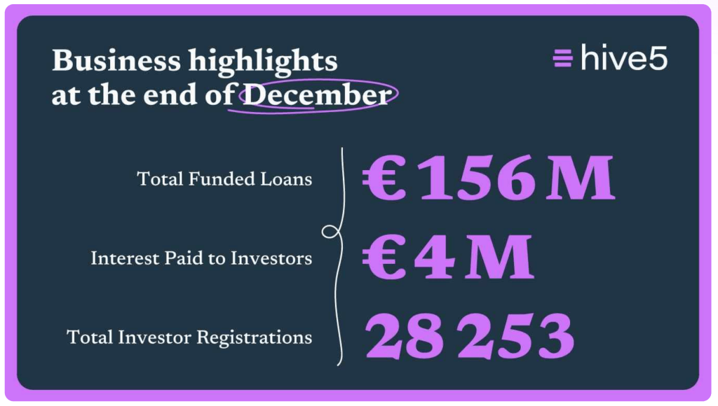 A lo largo del año, Hive5 mantuvo una actividad inversora estable y un flujo constante de nuevos préstamos, incluso durante los periodos estacionalmente más lentos. Para los inversores, estas métricas son importantes porque favorecen una gestión de riesgos más disciplinada, y una toma de decisiones más rápida y consistente.