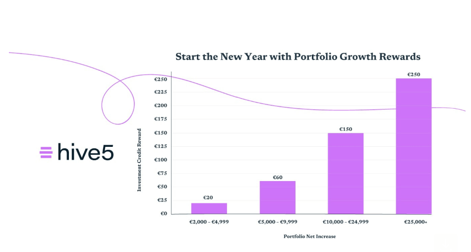 Aumenta tu cartera con Hive5 y desbloquea recompensas adicionales a medida que inviertes más. La Campaña de Recompensas para el Crecimiento de tu Cartera está disponible por tiempo limitado (solo enero y febrero).