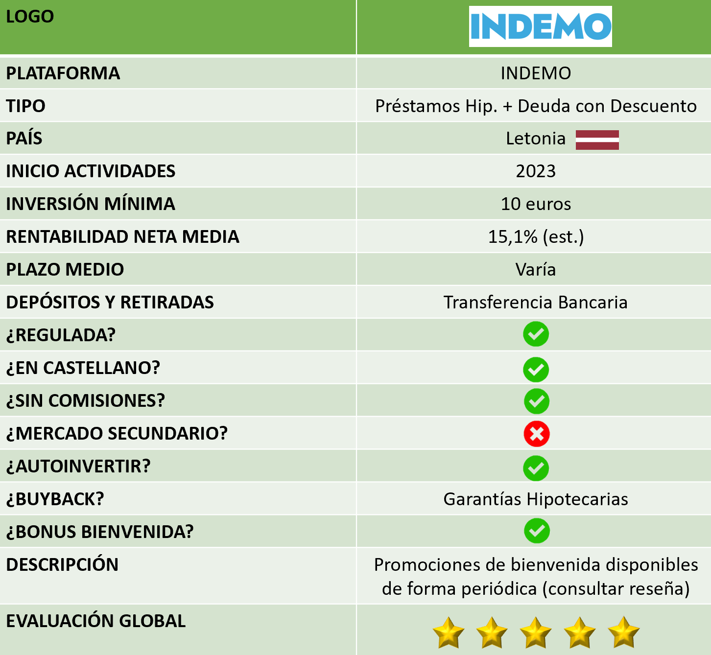 Indemo es probablemente uno de los lanzamientos y de las plataformas de inversión crowd más interesantes que hemos tenido en meses si no en años, aunando en su propuesta un producto de inversión único y con un excelente potencial como las Deudas con Descuento, una interfaz y operativa innovadoras y una seriedad y solidez a nivel formal extraordinaria, siendo una empresa totalmente regulada con un equipo gestor atento, experto y motivado detrás.