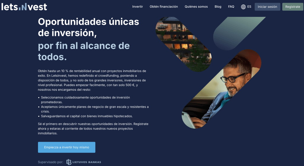 Letsinvest.eu es una plataforma de crowdfunding inmobiliario operada por 8 Stars UAB -empresa regulada y supervisada por el Banco Central de Lituania- que nos permite invertir en un amplio abanico de proyectos de Real Estate desde 500 euros por operación. En esta review compartimos todas nuestras opiniones e impresiones acerca de la misma… ¡No te la pierdas!