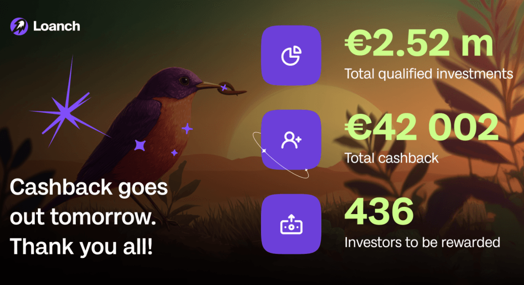 El reembolso fue abonado el 11 de noviembre directamente en las cuentas de los inversores que cumplían los requisitos. Enhorabuena a los que participásteis y ¡Estad atentos a las nuevas oportunidades que llegarán pronto!