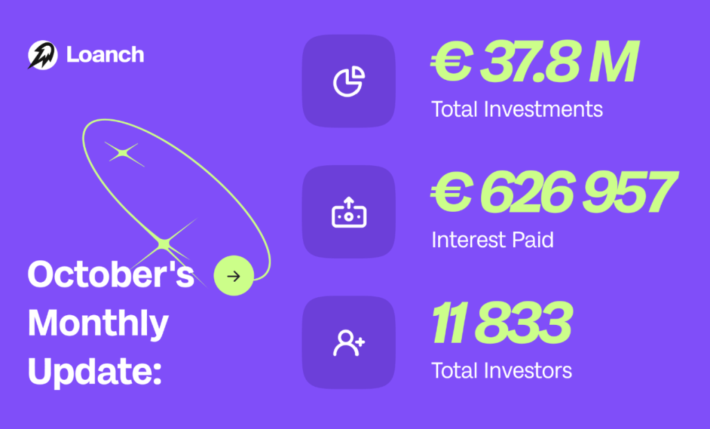 ¡Vale crowdlenders!, vamos a empezar este informe con un rápido vistazo de las principales métricas con las que Loanch ha completado este pasado mes de octubre 2025