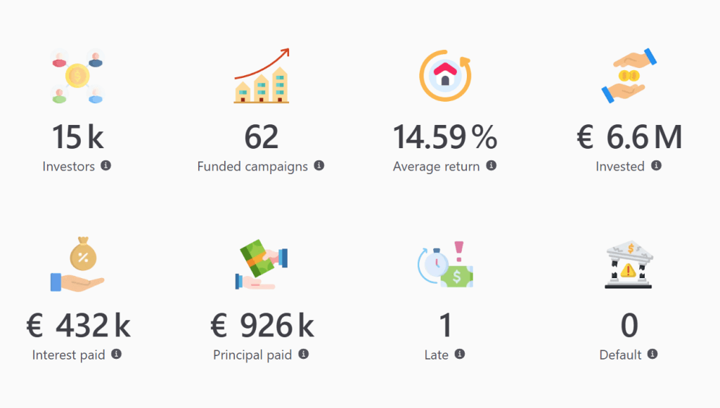 c) El rendimiento neto anualizado medio ha caído del 14,95% al 14,59%, es decir, ha disminuido un 0,36%, pero sigue sin duda dentro del rango alto del sector del crowdlending.